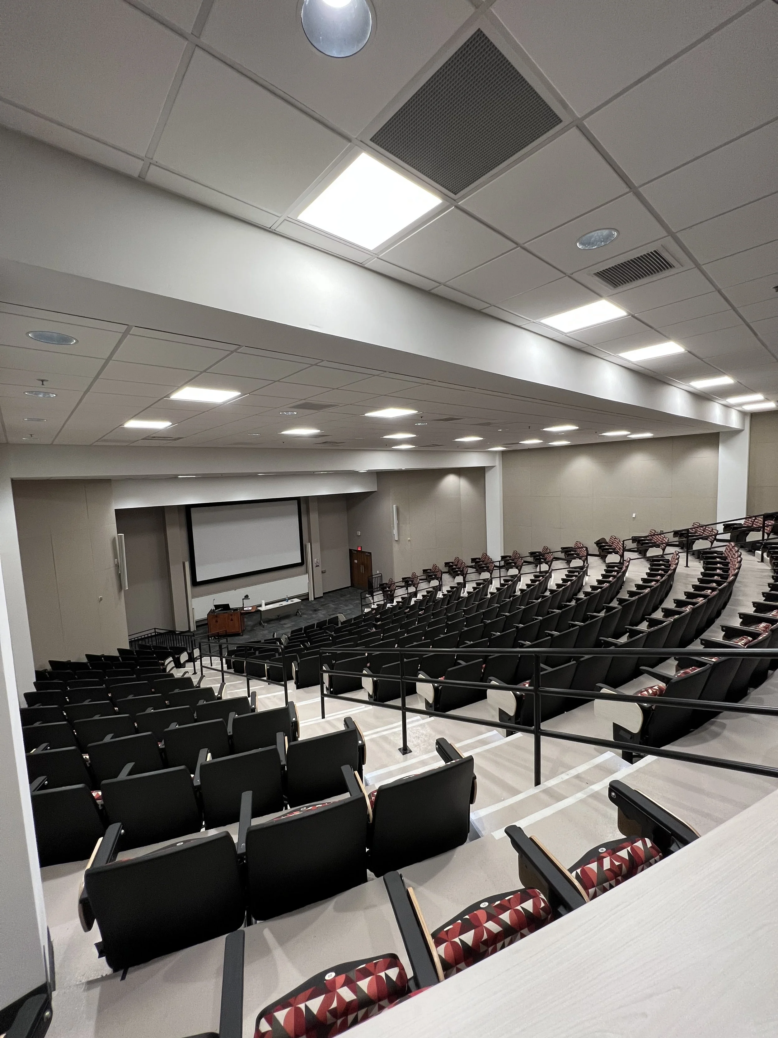 Cloverleaf completed another extensive interior renovation of a 4,200 sq. ft. classroom Auditorium at the University of Georgia which consisted of all new finishes, new electrical LED lights, new seating, a new ceiling, new paint and wall acoustic panels. We are honored to continue to complete successful projects the the University and their students!